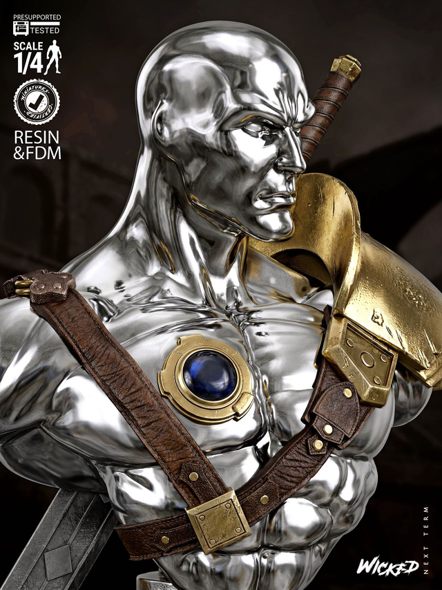 Buste-portrait résine fan art du Surfeur d'argent, inspiré des comics Marvel