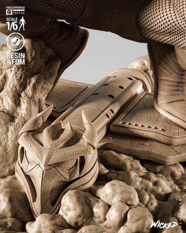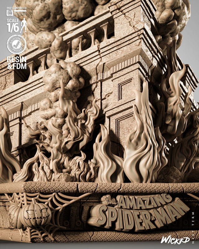 Une statue bien détaillée posée sur un socle pleins de références et une pose iconique du personnage